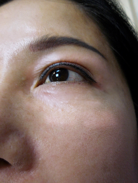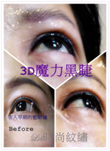 我有早期的藍眼線~一直很困擾~後來朋友介紹說莉莉老師手技不錯~老師也提供一個建議,不洗掉藍眼也行的通的秘方~就是可以操作魔力黑睫,直接蓋上藍眼線~這根本就是一舉二得嘛~而且我一直就想要粗一點的眼線~畢竟年紀有了~眼神老事無神~好像提不出勁一樣~於是就來體驗囉~呵~~