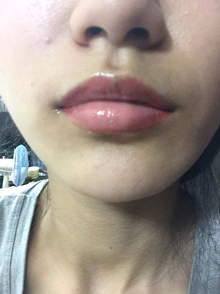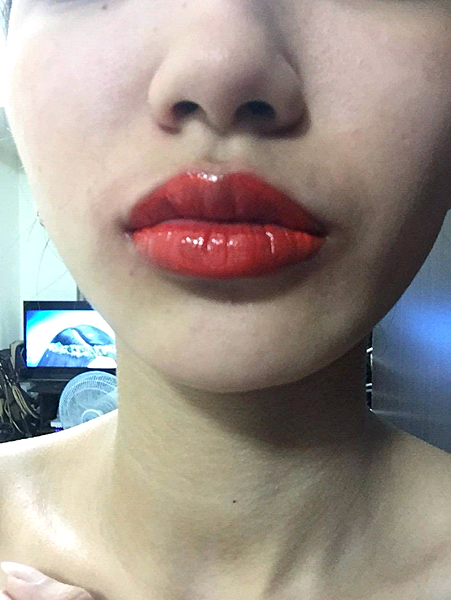 這是術後當天晚上拍的~~紅吱吱的吧~紅到我都覺得皮膚顯的更白~我超想要紅唇