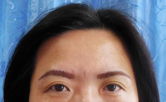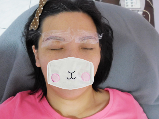 確定好要的眉型後,老師會再用眉筆把要的位置加強做一下記號,當然如果你本身不會畫眉毛的話,就和老師先溝通一下,討論最適合的眉型唷!眉型當天討論了30分鐘,我想要比較挑眉的感覺(個人覺得會比較有精神,現在流行的韓式平眉,完全不能接受,比較適合年輕的阿妹仔)