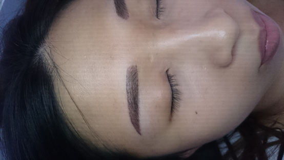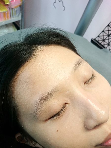 完成後會塗上一層染料-敷約1分鐘讓眉毛吃色。(超快速!)
