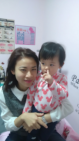 (圖下)是第二次來補色後,我要求顏色想在深一點點,因為化妝時,粉餅常常不小心壓到眉毛,就變淡了,加上顏色深一點點,維持時間也可以比較久一點點,所以我還是想要深一點點啦~~當天帶著我的小女兒來陪我!!!