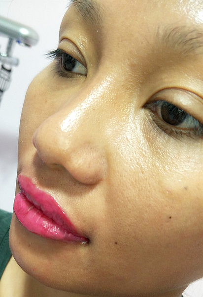 二、敷唇貼約30分鐘==>接著老師會是先幫我上唇特別先轉色,把原先那個黑色素的痕跡,轉為淡粉紅後,然後上下唇在統一用跟我下唇顏色差不多的色乳來調成我想要的裸唇。