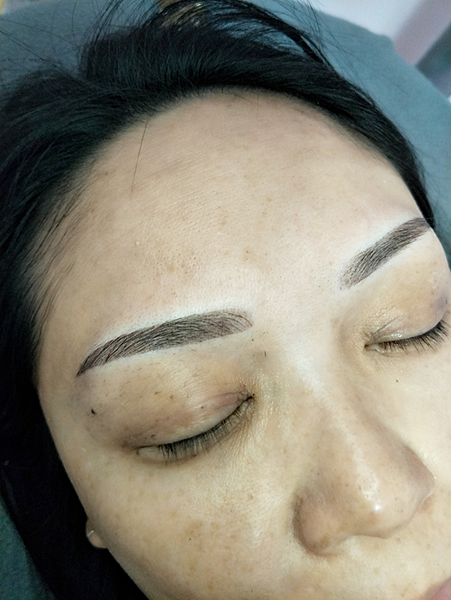 操作半永久眉毛整個過程大概持續一個多小時,小妹覺得有輕微痛感,像平時用夾子拔眉毛的感覺,不過更加暴力一些,會感覺眉毛上方的皮膚被扯起來。