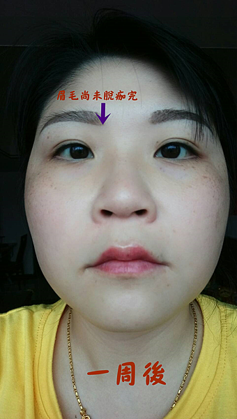 眉毛大約第4-5天有開始脫皮,目前脫了6~7成了,等全部脫皮後大約8~10天左右~眉色就更自然了~