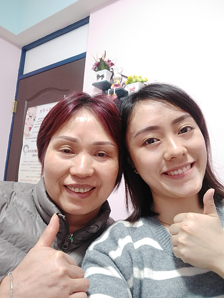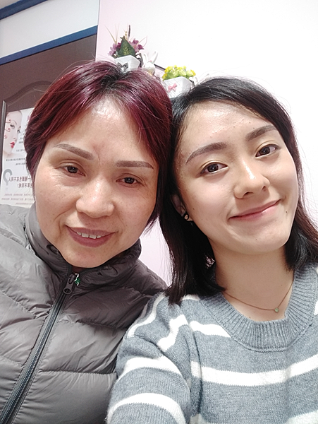 第一次霧眉的人,我們母女的心情都很緊張呀。不過放心,老師是專業的紋繡師,就放心交給專業的吧。