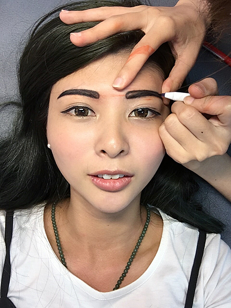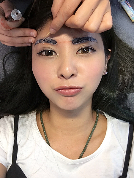 老師現在用定位筆,在確認眉型的位置,以防等會上穩定劑時,眉型會模糊掉!老師真的很謹慎~只能說交給專業的老師~真的可以大大的放心~