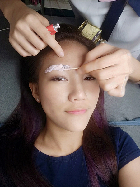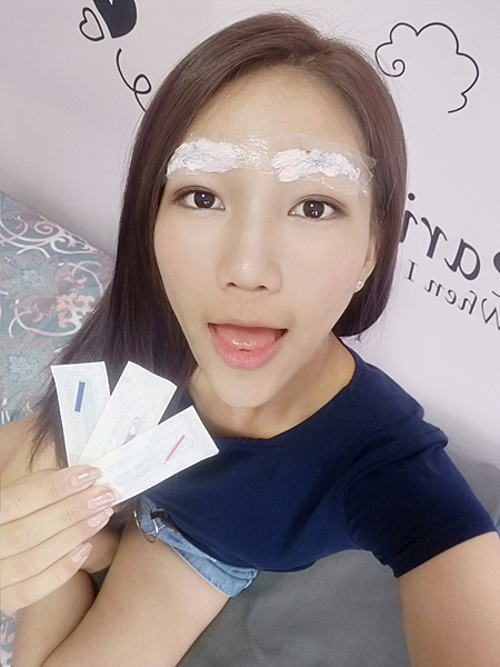 (正在敷色五分鐘)說真的過程中覺得沒什麼太大的感覺,除了眉骨有神經那會覺得好像有點刺刺的,其他真的不痛,而且超級快的啊!!!!不到30分鐘吧!!