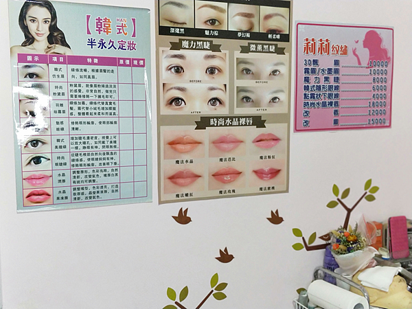 牆上展示了服務項目的價格和相關證照讓人放心~畢竟半永久彩妝持續維持也要幾年的時間 ~選擇店家時除了評價也要注意是否有專業認證!!!