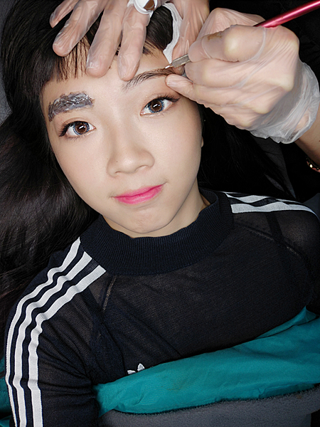 老師會先觀察你的五官、骨骼肌理及臉型比例來建議大家適合做什麼樣的眉型,因為我自己之前有紅眉的痕跡,所以我的眉型還是只能偏向平眉的部份(蓋過紅眉),不過我真的個人其實也是比較喜歡平眉感~可能也看習慣了~